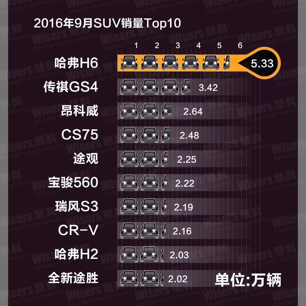 隨著中國汽車工業水平的不斷發展,自主品牌已經逐漸走出了口碑的陰影,最近推出的一些自主品牌高品質SUV力作在市場上都取得了不錯的銷量成績,并且用戶反饋的口碑也都相當不錯。9月SUV銷量前十榜單中有6款自主品牌入圍,暫時與合資品牌博弈的危機已經解除,但仍不可小覷。這個月哈弗H6的銷量一舉突破5萬輛,獲得歷史性突破。長安 CS75銷量大漲,排行上升到第四名,瑞風S3、本田CR-V也成功進入前十榜單,尤其瑞風S3在新車上市的助力下,銷量高歌猛進,銷量比8月增長了3倍多,從50名躍居第七名。