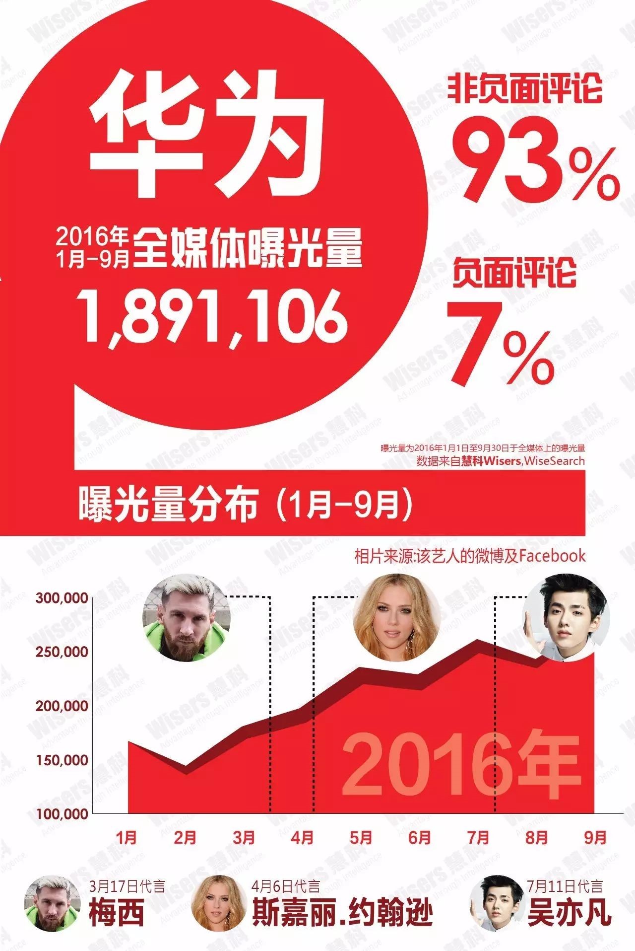從三個品牌1-9月的全媒體曝光數據來看,在宣布代言人之后,總體上品牌的全媒體曝光量和輿論聲量均隨之明顯提升。其中華為在3月以600萬歐元的天價費用簽下梅西后的消息在全媒體炸開了鍋,當然梅西也不負眾望,對于華為品牌特別是其在海外的影響力在代言后提升顯著。