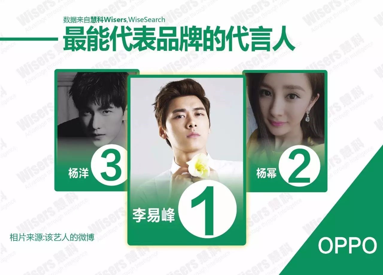 OPPO向來是以代言人來撐門面、打天下,每次都是邀請當紅的明星來為其品牌代言。因為OPPO主打顏值,定位使用人群是時尚的年輕男女,所以OPPO R9邀請了高顏值的男神和女神代言。李易峰是當下男神的代表,小鮮肉,能博妹子歡心。而楊冪則是女神代表,不僅能讓女性關注,更多的是男性也加入了OPPO系列。正因為有明星的代言,讓OPPO R9的知名度得以進一步提升,獲得了不錯的口碑,看來明星代言在智能手機殘酷的競爭中,起到了一定的作用。但是相較華為和小米,OPPO明星代言人與品牌共現的程度明顯較弱。當紅明星固然有其個人魅力及效應,但是如果同一時間代言過多品牌,他們與品牌的代表性和粘合性就會減弱,從而造成一定的影響。