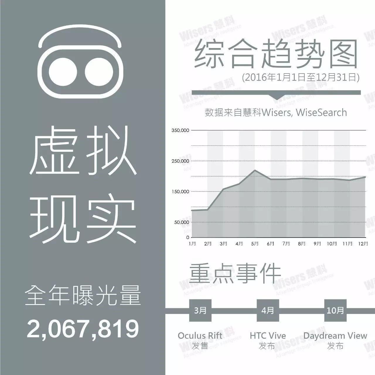 VR是2016年的中國科技界的一個重要的關鍵詞,就在2016年,虛擬現實(VR)真真切切地走進了“現實”。早在年初3月份,Oculus就發售了消費者版的虛擬現實頭盔Oculus Rift,緊接著, HTC與Valve就在4月5日聯合發布了HTC Vive。但是,需要配置較高的電腦才能提供的VR體驗比較受限制,除了價格昂貴,同時也有線纜纏繞的煩惱,這就推動了手機支持的移動VR的誕生。2016年10月4日,谷歌攜帶著Daydream View和三星的GearVR 齊頭并進,將移動VR帶向了普通大眾。從慧科全媒體大數據也可以看出,從3月份開始,接連不斷的技術突破和新產品的面試,讓虛擬現實成為了輿論媒體的寵兒,2016年已經深深的打上了“虛擬現實元年”的烙印。隨著越來越多的科技巨頭的加入和開發者技術的日積月累,虛擬現實的前景無疑令人激動萬分,讓我們一起拭目以待吧。