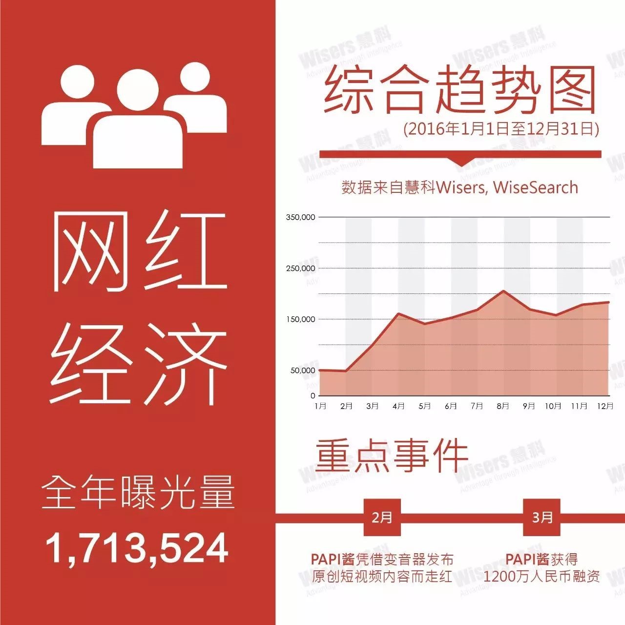 提到網紅,相信大家對它并不陌生,從最早的芙蓉姐姐、鳳姐到后來的郭美美、奶茶妹妹,再到最近的papi醬,網紅一直在不斷更替中。2016年2月份29歲的papi醬憑借變音器發布原創短視頻內容一夜爆紅,短短幾個月在社交媒體吸粉數百萬,轟動中外。3月,papi醬獲得1200萬人民幣融資,市場估值1.2億人民幣左右,2016年度中國最不可思議的創業投資竟由一個搞怪逗笑的草根網紅獲得,papi醬讓網紅在2016年成為了網紅經濟。結合慧科全媒體傳播聲量趨勢圖我們可以看到,3月和4月由于papi醬事件吸引了大家的眼球,全媒體的討論熱度猛增。對于網紅們來說,一方面要保證合法,避免和色情,淫穢扯上關系,另一方面則要找到合適的方式運作,防止“火一把就死”,否則就沒有經濟一說了。未來希望在合理監管下良性發展,相信網紅經濟可以有更大的突破。