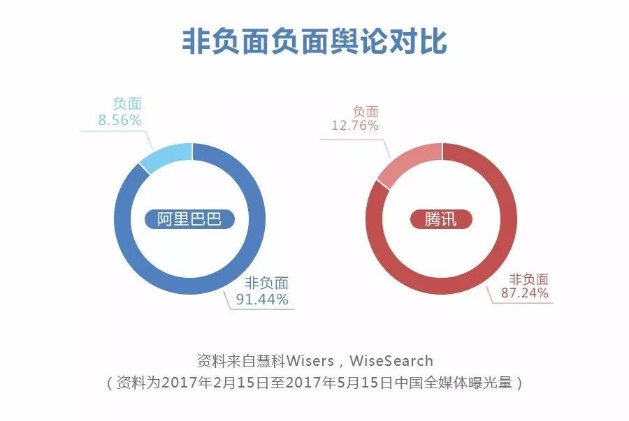 根據(jù)慧科大數(shù)據(jù)平臺的數(shù)據(jù)顯示,三個(gè)月里騰訊公司的負(fù)面輿論比例較阿里巴巴公司高出許多,關(guān)于騰訊公司的負(fù)面新聞達(dá)到12.76%,阿里巴巴公司的這一比例則為8.56%。
