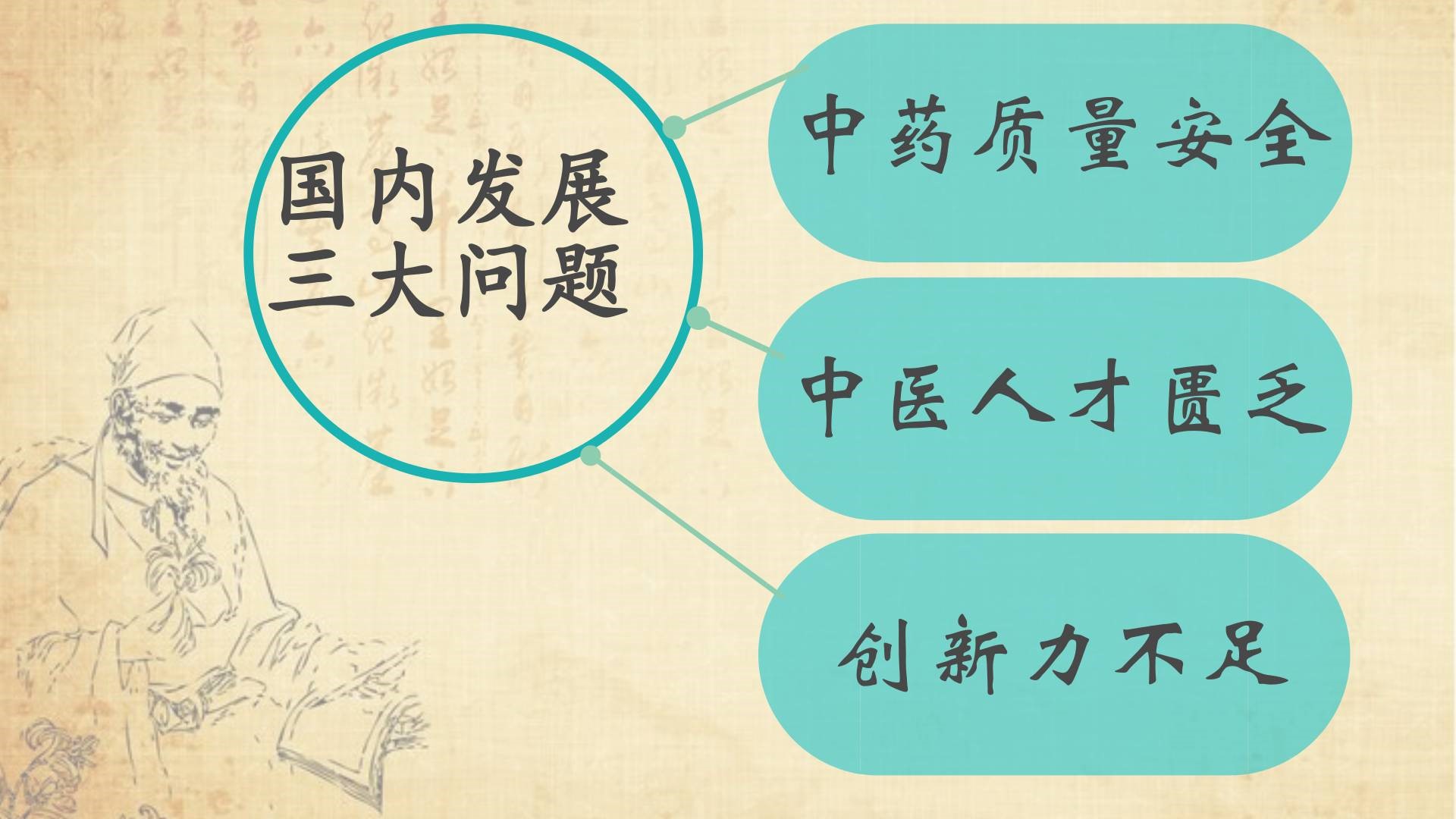 國內方面,中醫藥行業面臨中藥質量安全、中醫人才匱乏、創新力不足等主要問題。