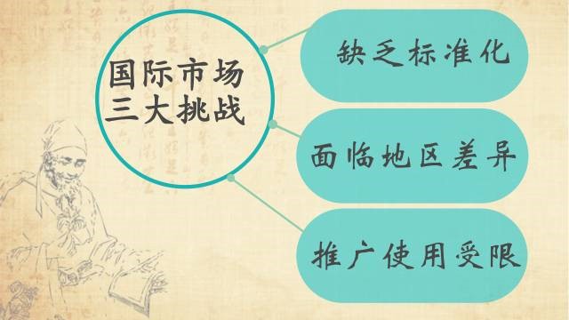 中醫藥的標準體系還未與國際接軌,缺乏標準化建設。