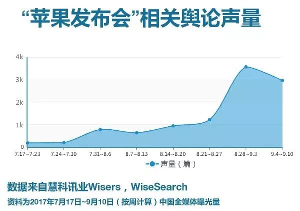 慧科訊業(yè)全媒體大數(shù)據(jù)平臺顯示,從七月下旬起,有關(guān)蘋果發(fā)布會的新聞報道聲量激增,這和資本市場對于蘋果產(chǎn)業(yè)鏈相關(guān)公司今年的業(yè)績預(yù)期趨勢相符:同花順數(shù)據(jù)顯示,在7月18日至9月11日,蘋果概念指數(shù)漲幅達(dá)到20.37%,表現(xiàn)十分出色。9月初輿論聲量達(dá)到峰值,伴隨著9月的到來,媒體和民眾對蘋果發(fā)布會的關(guān)注度達(dá)到頂峰。