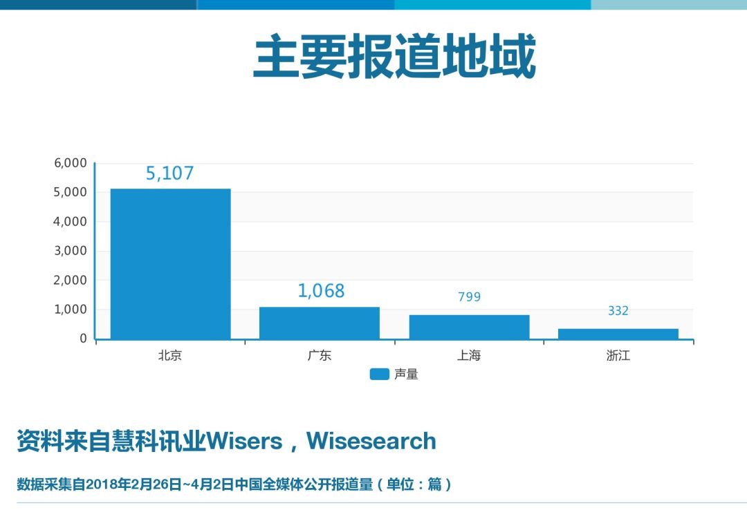 報道地域方面,北京媒體數量最多,監測期間共有5107篇報道量,其次為廣東、上海等。