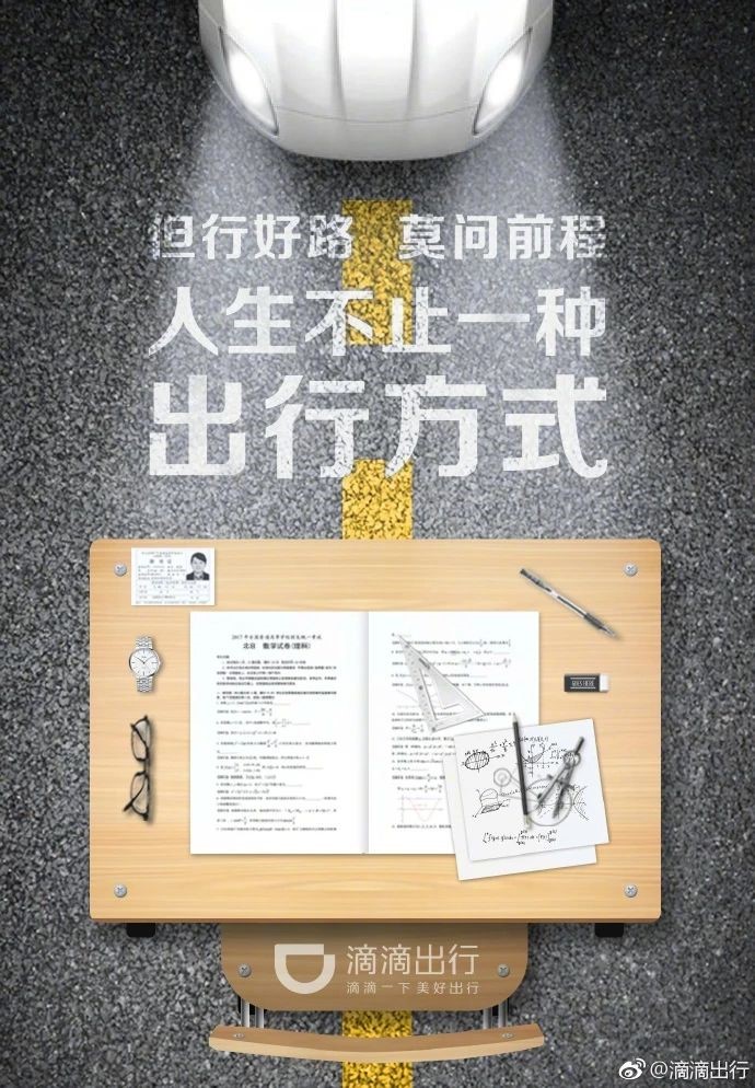 滴滴從另一個角度來祝福高考,為學子減壓,“人生不止一種出行方式”很巧妙地把滴滴自身的產品特性代入,用“路”的延伸意義和現實意義來對照,這招很聰明。
