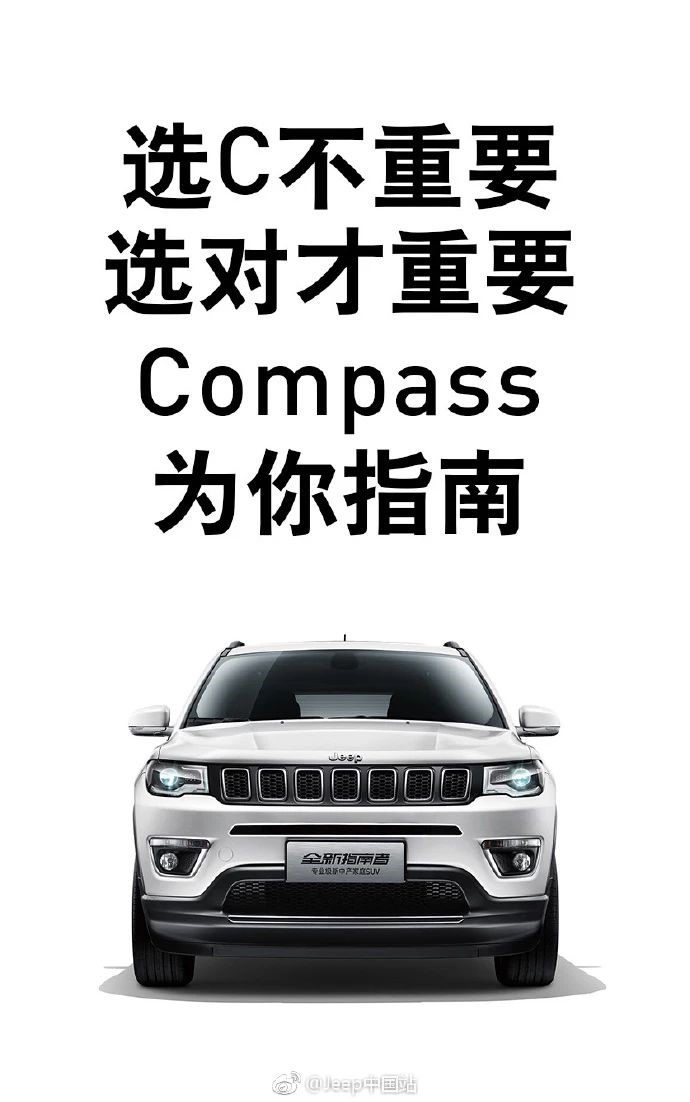 在一片調侃“不會就選C”的玩笑聲中,Jeep反其道而行,順勢把產品的優勢推出“compass為你指南”。