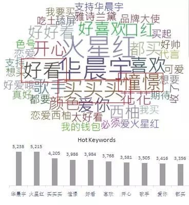 在#華晨宇火星紅#的案例中,“火星人”正是華晨宇及其歌迷的昵稱用語,“火星文”就是他們的專屬語言,基于這類關鍵詞的挖掘提取,品牌就可以用“飯圈”的語言將營銷信息表達出來,“這是品牌刷好感、‘入圈’的門檻。小鮮肉的時代已經慢慢過去,粉絲不再是盲目買單的人群。品牌是時候開始從強調明星轉移到強調粉絲的重要性,讓他們產生‘被看到’、‘被理解’的感覺,拉近品牌與粉絲之間的關系。”楊慧旋說。
