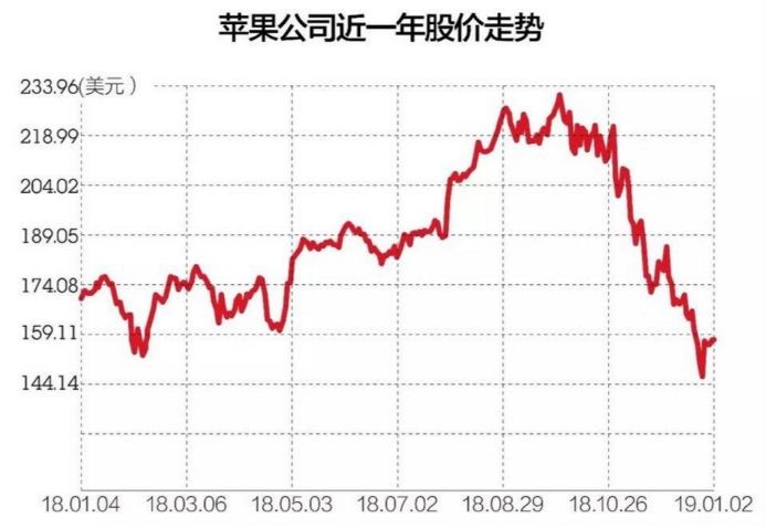 1月2日,庫克致信投資者,信中稱,蘋果將迎來15年來首次下調營收預期。蘋果公司對未來的信心不足,直接導致股價的飛流直下。