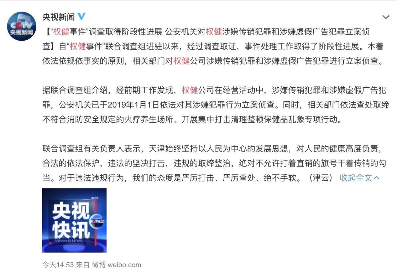此前,權健更是多次被央視曝光過其產品涉嫌夸大用途。多年積怨,一朝爆發,權健風波很快形成全網輿論漩渦。