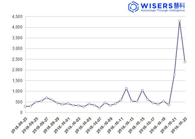 恰逢周末,事件一經曝出,該爆料文章點擊量已超10萬+。21日,該公眾號繼續爆料,稱馬蜂窩開始銷毀證據,業內媒體開始跟進,事件繼續發酵。22日馬蜂窩一紙訴狀,狀告爆料公眾號侵犯名譽權,大眾媒體跟進,輿論聲量進一步升級,相關報道量較常規數據飆升超8倍。