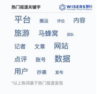 作為國內主打用戶真實體驗分享的旅游網站,馬蜂窩深受廣大驢友歡迎,注冊用戶超1.2億,體量不小,此番涉嫌抄襲的1800萬用戶評論,數量龐大。事件爆出后,慧科訊業抓取熱門報道關鍵詞,結果顯示“內容”、“用戶”、“點評”、“搬運”等詞出現頻次較高,此次輿情關注熱點集中在內容抄襲。