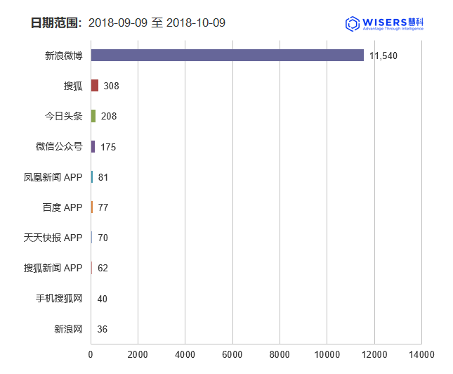 作為一場發起于微博的活動,活動最初的目的也劍指自媒體流量,因此,關于該事件的討論熱度,新浪微博也不負所期,遙遙領先。據慧科訊業全媒體監測平臺數據顯示,除微博外,關注此事件的多為綜合類媒體,如搜狐,近日頭條,鳳凰新聞等,暫未引起專業類媒體的大面積討論。