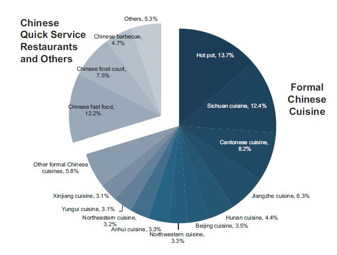 中式餐飲難成規模,與中餐繁雜的菜系與各地飲食差異相關。火鍋則因為能夠調和眾口,成為中國餐飲業態中占比最高的美食。據海底撈招股說明書數據顯示,火鍋占中國餐飲營收額比例第一,占比達13.7%。高于川菜、粵菜、西餐等其他熱門菜系。火鍋在中國市場巨大,而作為火鍋界的標桿企業,海底撈的成功上市也順理成章。