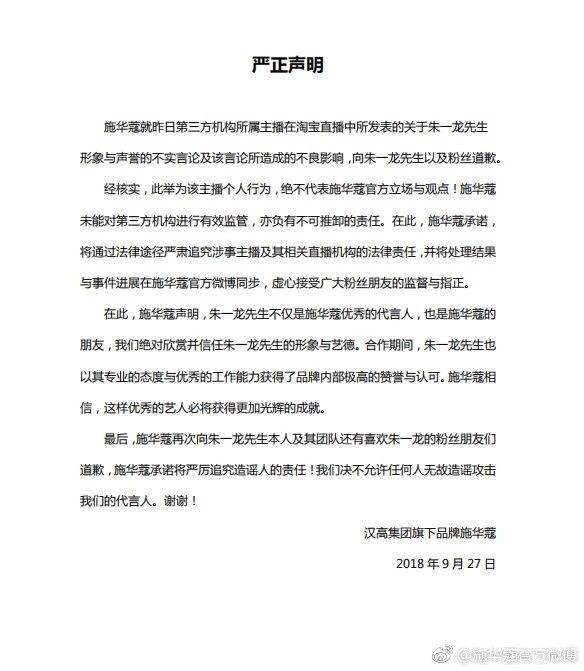 今天,本該為線上預售而忙碌的施華蔻,此刻正在焦頭爛額進行著危機公關。起因是昨天為活動預熱的官方直播工作人員通過平臺詆毀其代言人朱一龍。