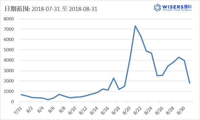 據慧科訊業全媒體監測平臺數據顯示,自8月20日首播后,高熱度僅持續了2天,其后的日均傳播聲量維持在3500篇次左右,與同期劇集在媒體聲量上,并未有較大懸殊。