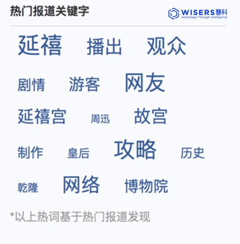 同時,慧科訊業全媒體監測平臺抓取了《如懿傳》的熱門報道關鍵詞,“延禧”、“攻略”、“延禧宮”等詞赫然在列。兩劇歷史背景及人物原型趨同,《延禧攻略》先行面世,收獲了好口碑及高流量,作為同類題材的《如懿傳》難免被拿來作比較。