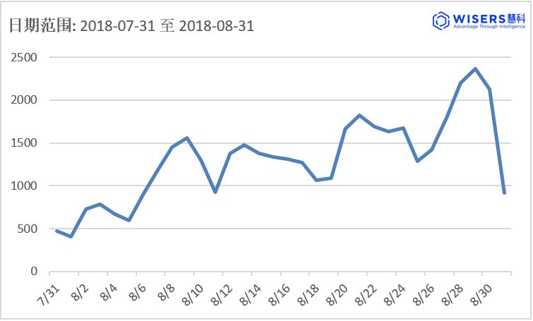 慧科訊業全媒體監測數據顯示,《天盛長歌》傳播聲量變化起伏較大,8月14日首播日,傳播聲量逼近1500篇次,隨之數據急劇下降,整體熱度低位徘徊,日均數據僅維持在800篇次左右。