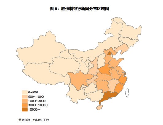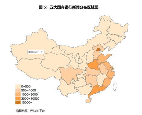 以下為五大國有銀行和股份制銀行的新聞報道的地域分布對比數(shù)據(jù):