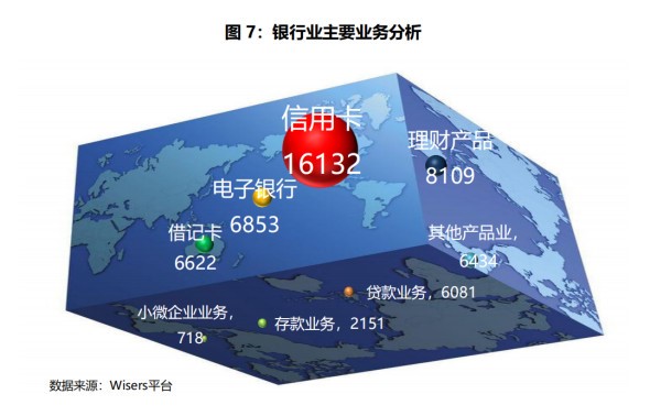 銀行的各項主要業(yè)務中,關于“信用卡”的新聞量居首,共有16132篇報道,較上個月有所上升。