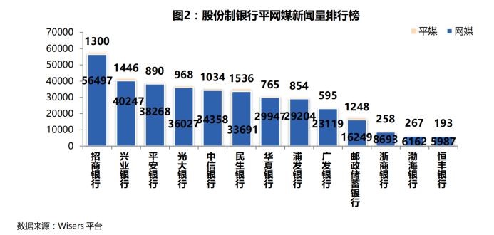 新聞排行量中,招商銀行的新聞總量最多,興業銀行和平安銀行的新聞總量分列二、三位,恒豐銀行新聞總量最少。