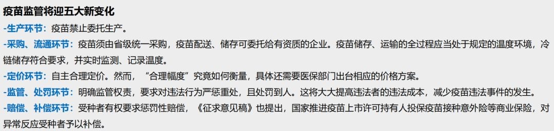 針對疫苗市場屢爆負面, 11月11日晚,國家市場監督管理總局發布《疫苗管理法(征求意見稿)》,來勢“兇猛”,疫苗行業迎來最嚴立法,根據《意見稿》,疫苗監管將在生產、采購、定價、監管等五大方面迎來新變化,希望借立法,肅清行業亂象。