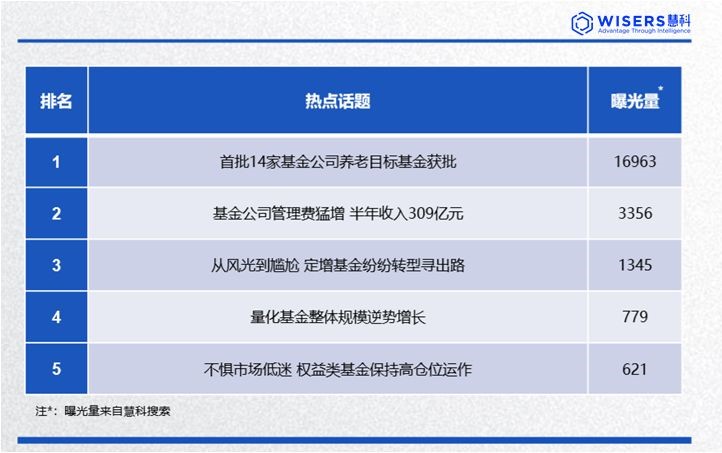 上月的正面話題集中在養老目標基金獲批、基金公司管理費猛增、定增基金忙轉型、量化基金規模增長等方面,而負面話題主要是業績虧損、規模縮水、基金踩雷、新基金延募、老鼠倉案件等。