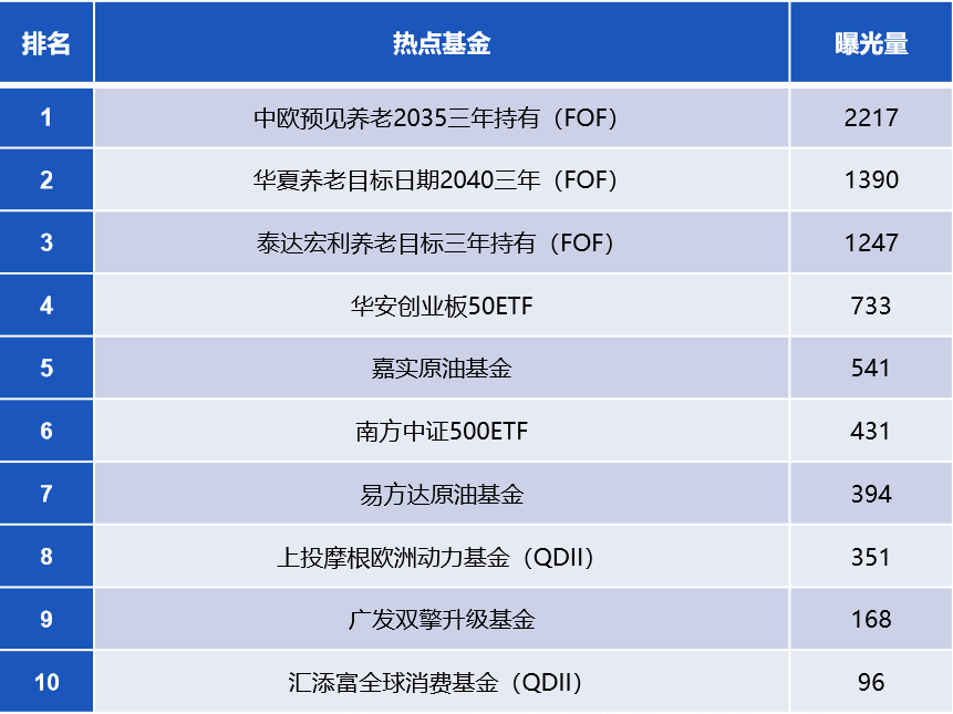 9月10日,中歐基金和泰達宏利基金旗下的養老目標基金正式發行,加上此前發行的華夏養老目標基金,目前已有三只養老目標基金正式發行。從慧科訊業AI大數據監測到的媒體曝光量來看,這三只基金位列第一梯隊,通過輿情分析,投資者對養老目標基金的認可度較高,參與度也較為踴躍。