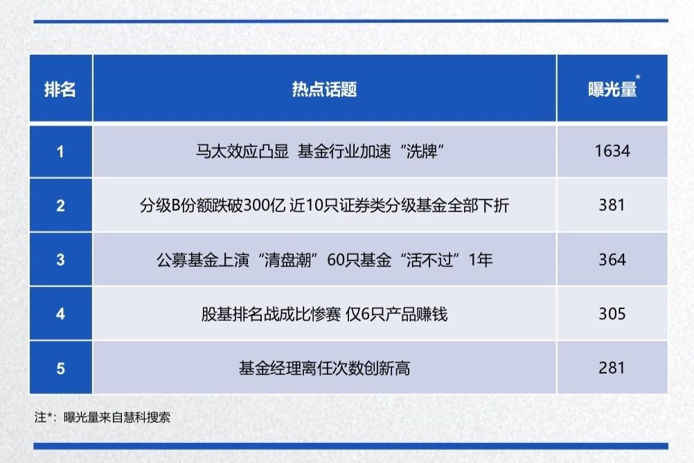 負面話題主要集中在基金行業加速“洗牌”、公募基金“清盤潮”、分級基金下折等。