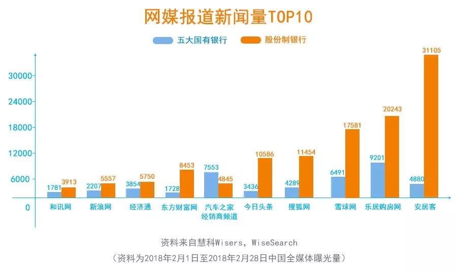 2018年2月,慧科訊業全媒體大數據平臺監測到五大國有銀行新聞有167122條,占銀行業新聞監測總量的29.39%。
