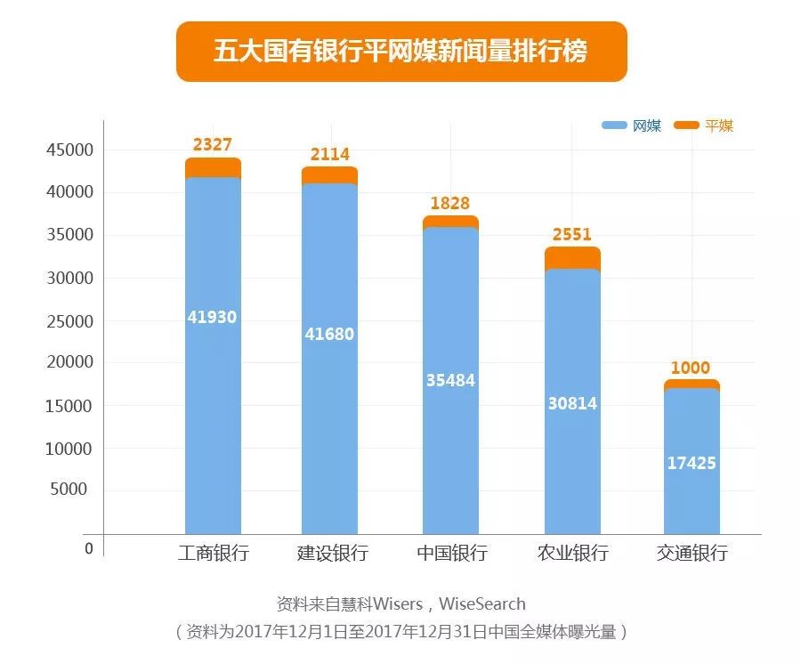 2017年12月,慧科訊業全媒體大數據平臺監測到五大國有銀行新聞有177153條,占銀行業新聞監測總量的27.68%。