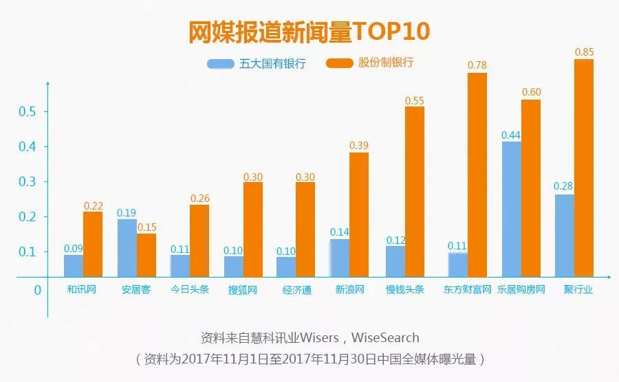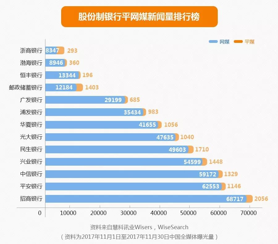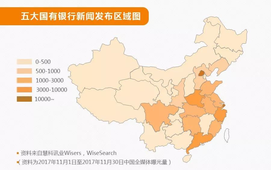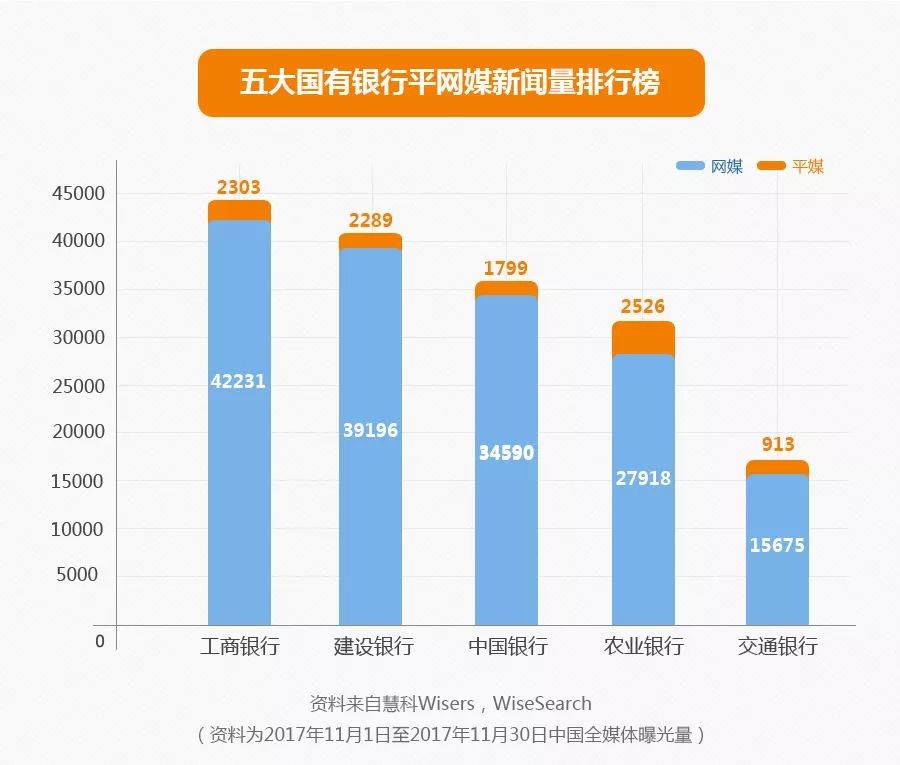 2017年11月,慧科訊業全媒體大數據平臺監測到五大國有銀行新聞有169440條,占銀行業新聞監測總量的25.12%。