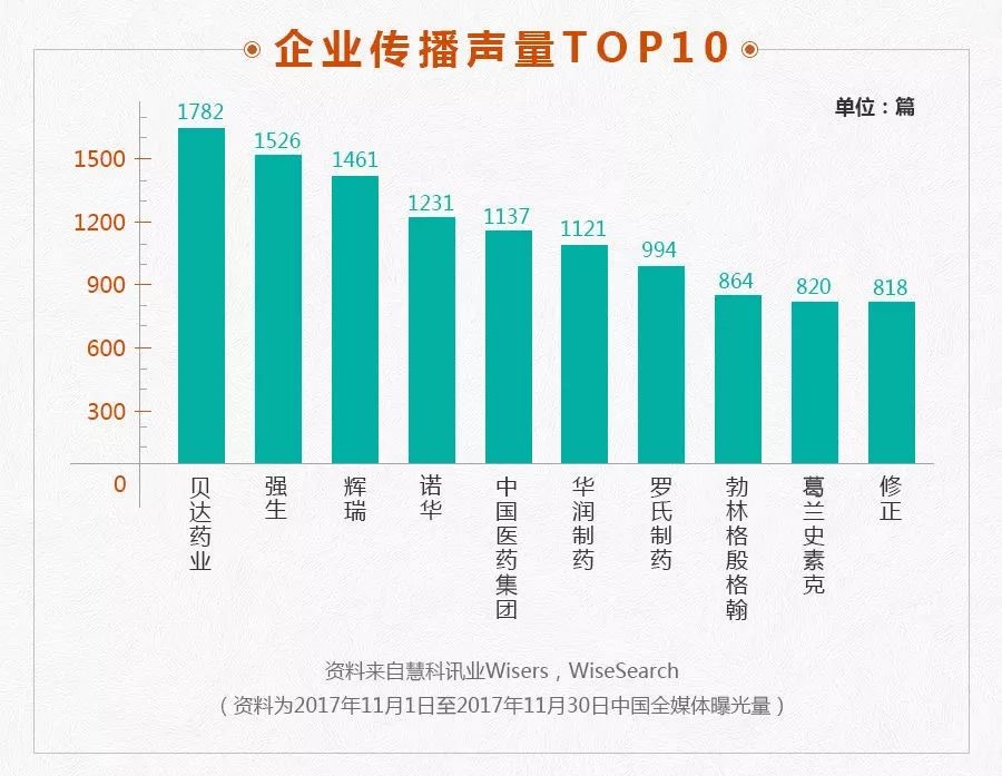 其后是諾華、中國醫藥集團、華潤制藥、羅氏制藥等,曝光新聞量相近。