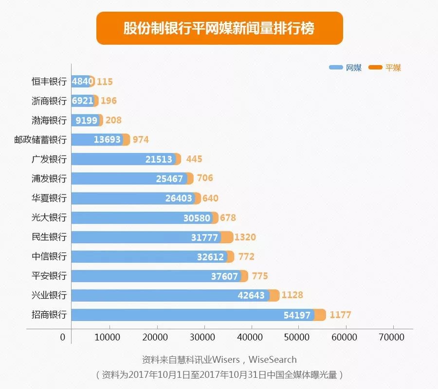 股份制銀行新聞有407940條,占比為73.69%。其中招商銀行的新聞總量最多,興業銀行和平安銀行的新聞總量分列二、三位,恒豐銀行新聞總量最少。以下為詳細數據:
