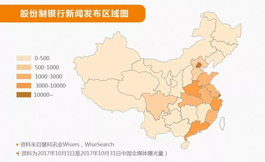 以下為五大國有銀行和股份制銀行的新聞報道的地域分布的詳細數據: