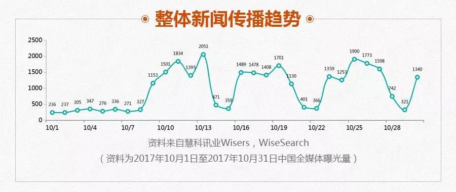 【摘要】本周慧科訊業全媒體行業大數據時間,慧科為大家呈上2017年10月《醫藥行業傳播分析報告》內容,為您呈現2017年10月國內醫藥行業的新聞傳播態勢、傳播熱點和市場分析。正逢十一長假,本月媒體內容相對減少。本月傳播較廣的新聞主要有“輝瑞13價肺炎疫苗斷貨或至年底 私立醫院要價翻倍”“北京下月起可預約接種宮頸癌疫苗 售價580元一支” 和“葛蘭素史克推出新疫苗 可阻止90%帶狀皰疹”等。十九大報告提出實施健康中國戰略的信息也得到媒體關注。