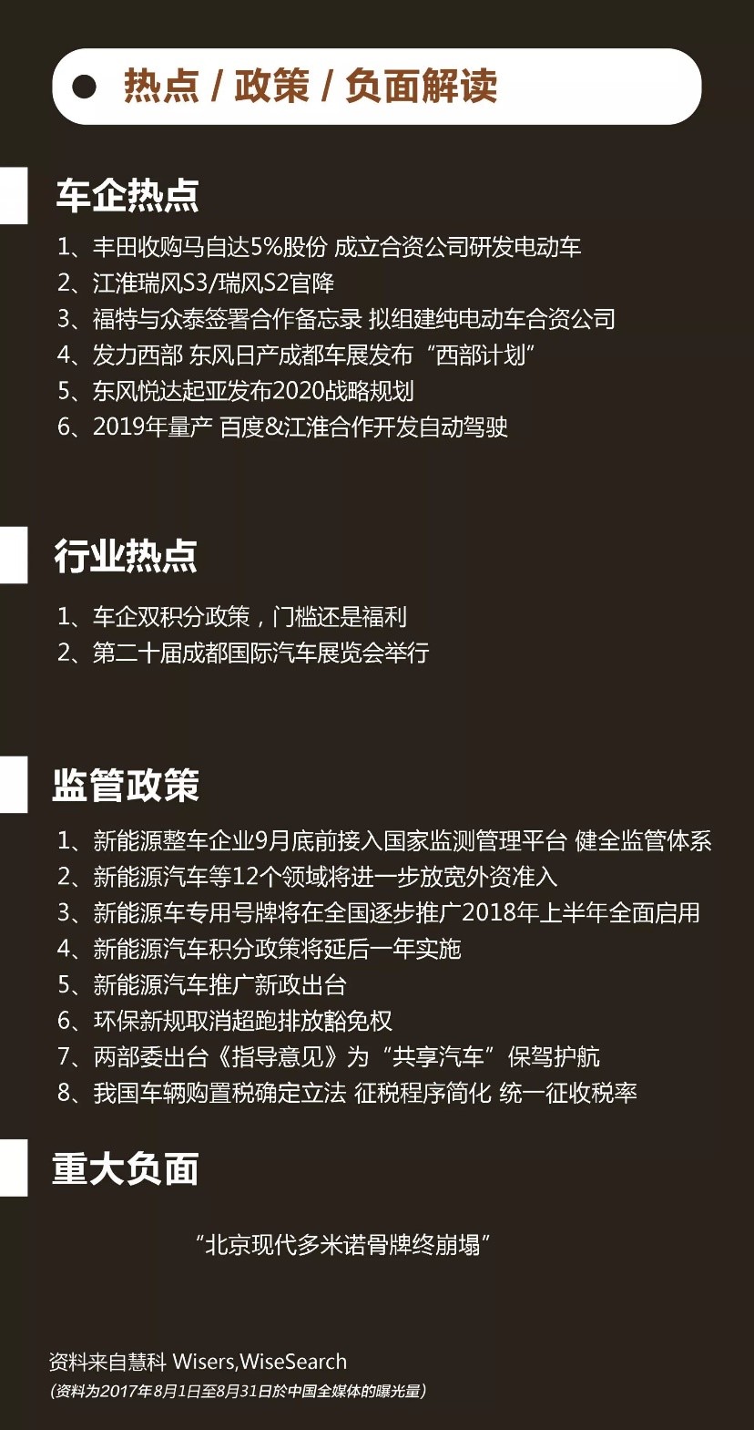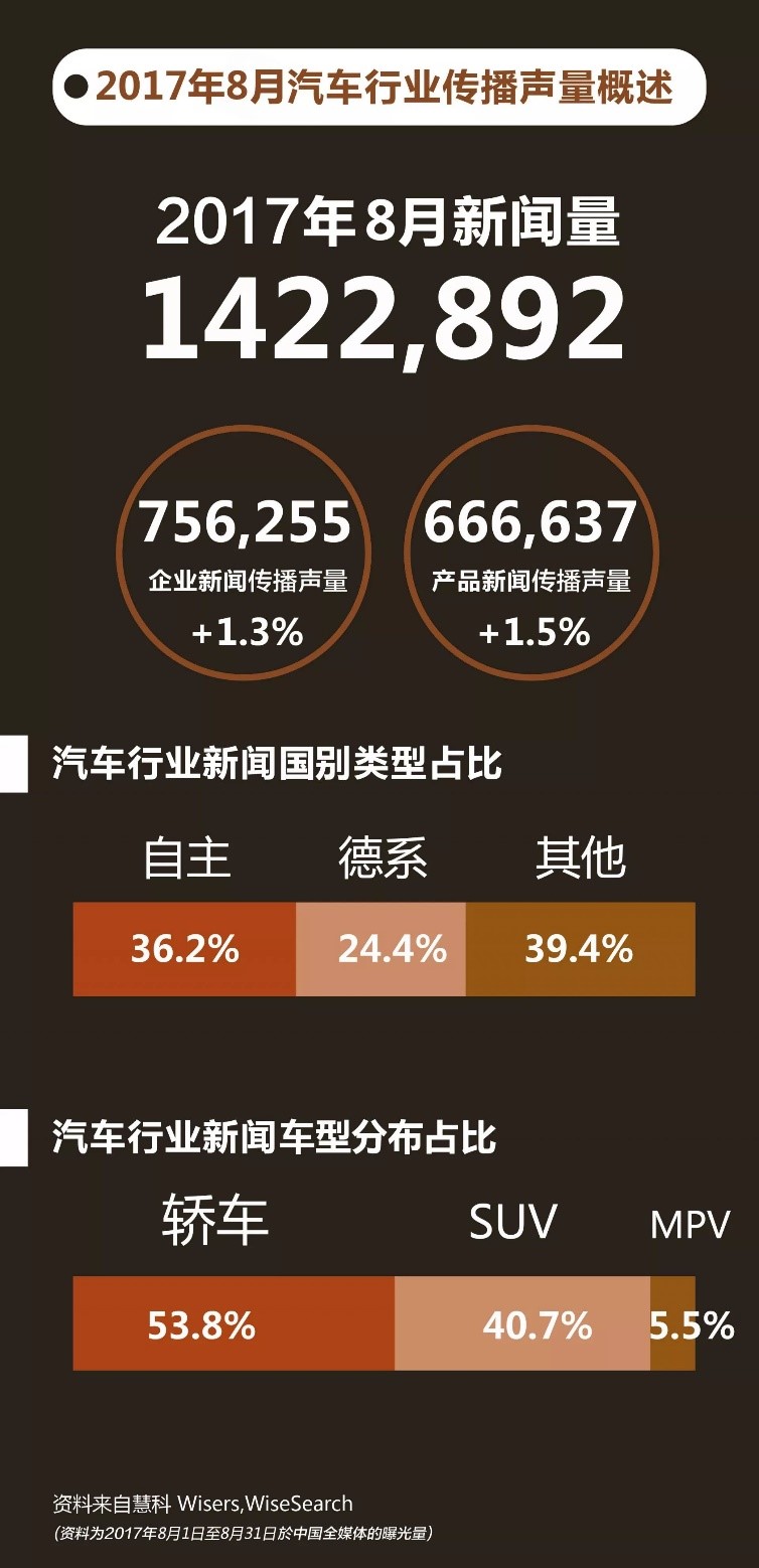 其中在8月25日,汽車行業新聞以64878篇的傳播量達到峰值,主要傳播內容為“戴姆勒入股北汽效應顯現:奔馳技術與工廠加持北汽自主”“眾泰與福特擬成立合資純電動乘用車公司”等。
