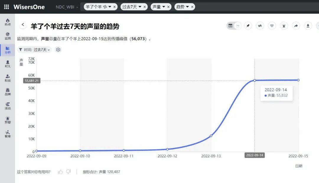 隨著游戲熱度持續瘋漲,參與該游戲的人數越來越多,游戲服務器也曾一度崩潰,出現了登錄異常等問題,關于該游戲的討論熱度也仍在持續。根據Wisers大數據平臺顯示,截止到9月15日13時,全網信息總量達127.9K。