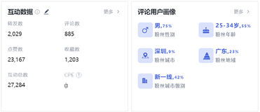 因此,慧科訊業智能數據平臺WisersOne通過其社媒追蹤功能,對抖音熱議話題進行單貼追蹤“廣州車展重磅新車集合!#廣州車展 #汽車人共創計劃 @抖音汽車”,并對粉絲畫像和評論做了分析和解讀。