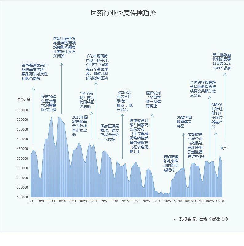 醫療反腐系列動作、各地推進集采進基層、第九批國采正式啟動、新藥上市等推動行業聲量走高。眾多行業重點熱點大事引發關注和討論。