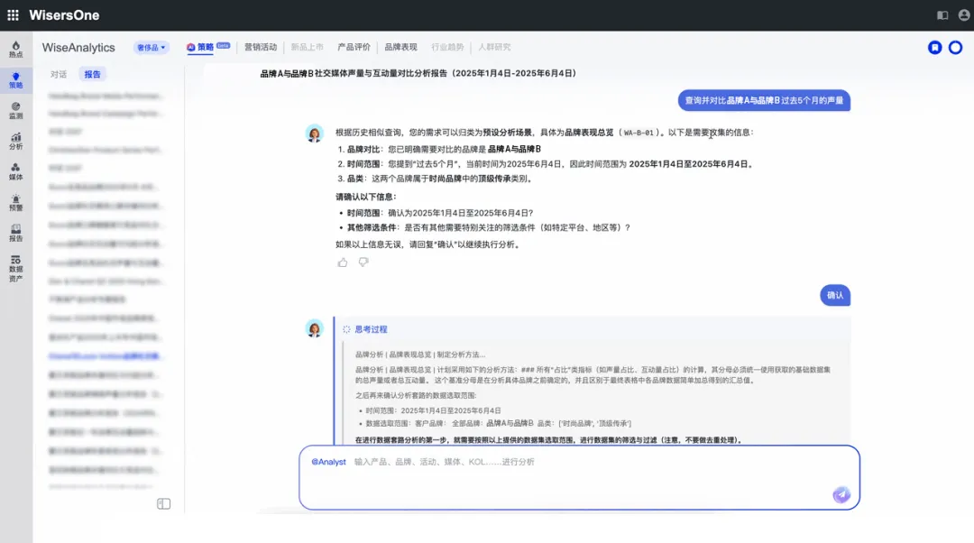 使用者只需通過與慧科訊業(yè)一體化AI Agent對話,即可基于預設分析場景及歷史查詢結果,通過AI生成品牌表現(xiàn)總覽報告,將數(shù)小時工作縮短至一問一答間。