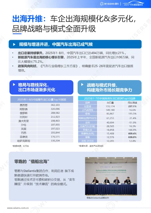 汽車(chē)出口市場(chǎng)呈現(xiàn)傳統(tǒng)與新興市場(chǎng)并舉、多元化的發(fā)展趨勢(shì)。除了保持對(duì)墨西哥、澳大利亞等傳統(tǒng)優(yōu)勢(shì)市場(chǎng)的出口,中國(guó)品牌也正大舉進(jìn)入歐洲等成熟市場(chǎng)。2025 年上半年,中國(guó)品牌在歐洲 28 國(guó)市場(chǎng)份額從 2.7% 大幅提升至 5.1%,銷(xiāo)量達(dá) 34.7 萬(wàn)輛,同比增長(zhǎng) 91%。