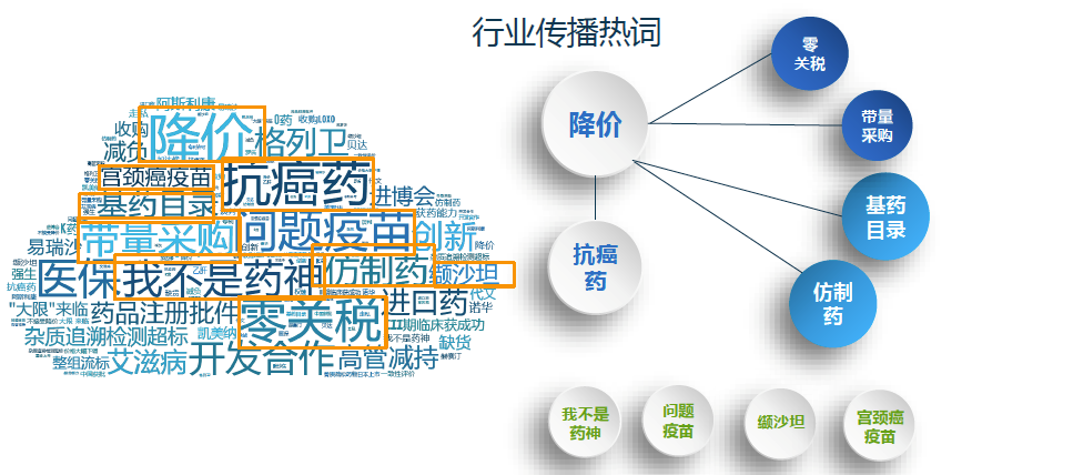 行業(yè)輿論環(huán)境分析之后,Cosmo又對(duì)2018年度醫(yī)藥行業(yè)熱點(diǎn)事件進(jìn)行了梳理。電影《我不是藥神》和權(quán)健事件毫無意外的成為2018年的行業(yè)熱點(diǎn)事件,“藥神”從電影上映,到人們對(duì)電影原型陸勇的關(guān)注,再到大家對(duì)抗癌藥高昂價(jià)格的質(zhì)疑,最后相關(guān)部門落實(shí)降價(jià)保供,Cosmo清晰地梳理了整個(gè)事件的傳播脈絡(luò)。權(quán)健事件則揭開了保健品市場(chǎng)及直銷行業(yè)的亂象,從丁香醫(yī)生的一篇《百億保健帝國權(quán)健和它陰影下的中國家庭》刷爆朋友圈開始,短短3天之后公安機(jī)關(guān)立案?jìng)刹椋麄€(gè)事件到達(dá)傳播峰值。